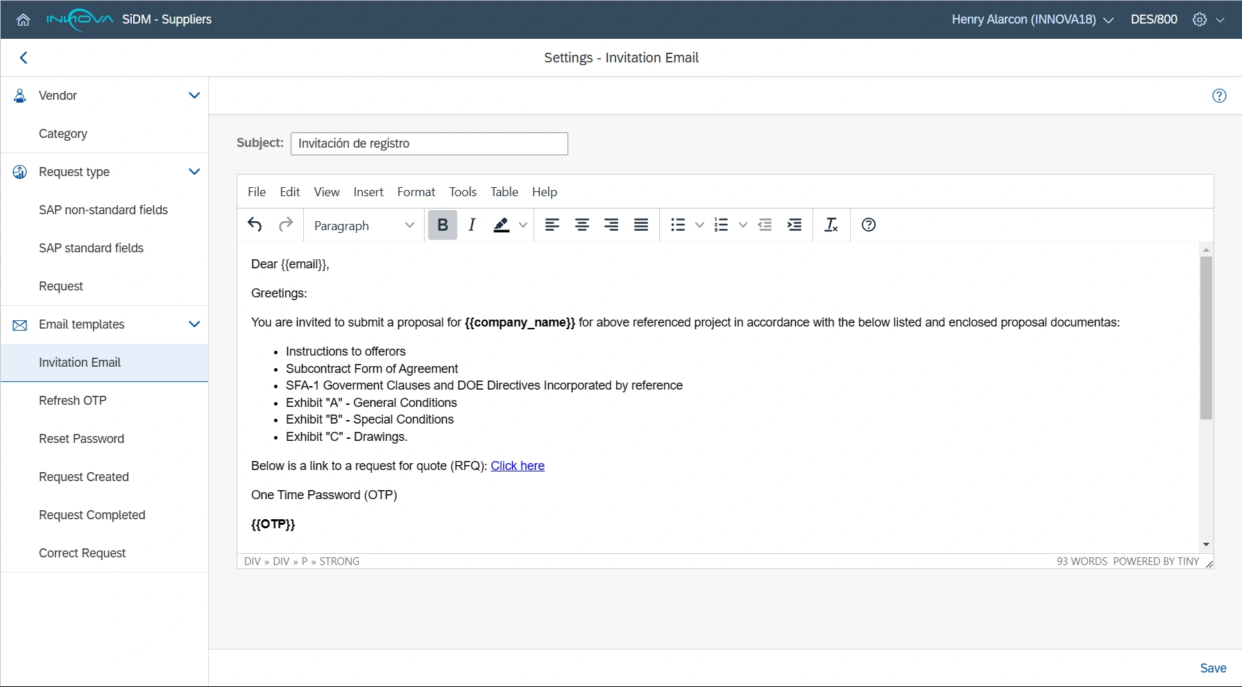 - Define fields (standard, non-standard, optional and mandatory) to be filled in by the user and the vendor in the request form.
