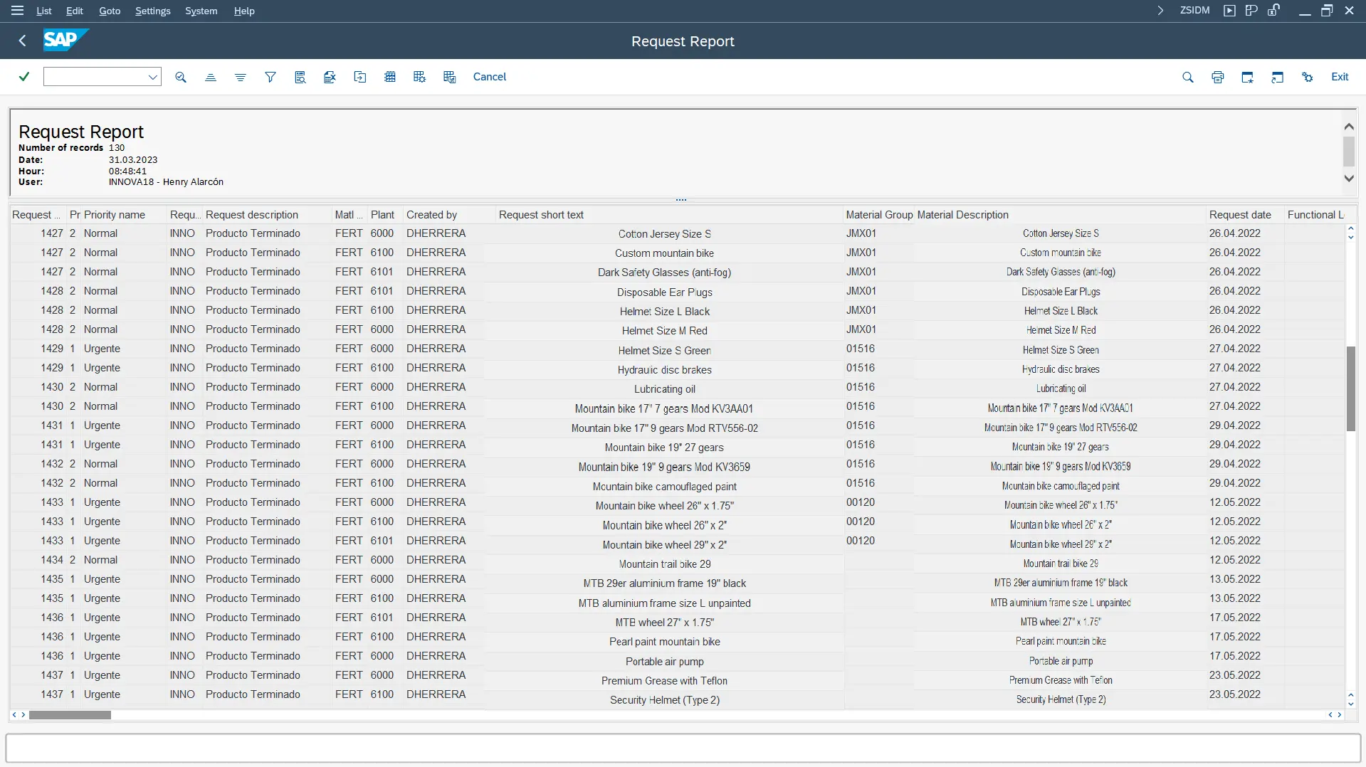 - Resumen y detalle de materiales existentes, así como auditoría sobre los procesos de creación mediante solicitudes.
